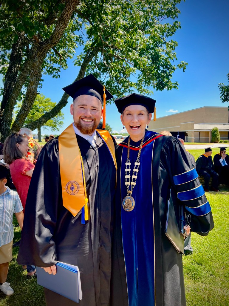 In 2024, I graduated from Crowder College in Neosho, Missouri with an associate’s degree in pre-engineering. Pictured here is a graduation photo with the President of Crowder, Dr. K. Pierson. I am now currently pursuing a bachelor’s degree in electrical engineering at Missouri S&T through the cooperative engineering program with Missouri State University in Springfield. After obtaining this degree, I plan to continue my journey in the engineering industry.